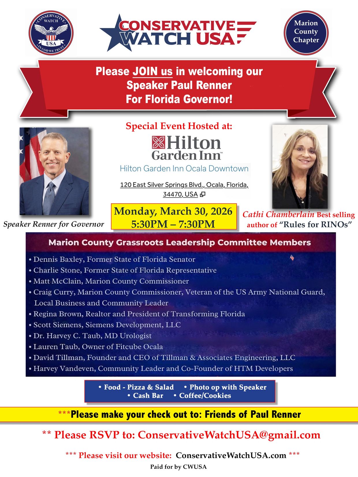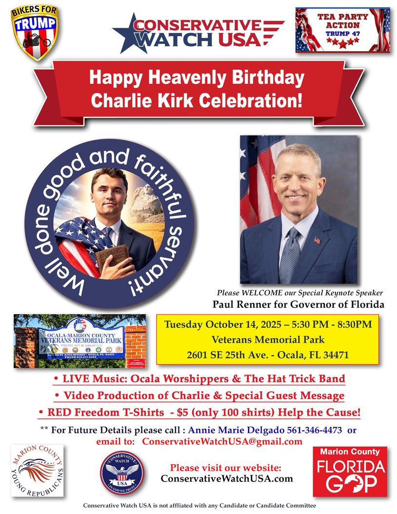 Conservative Watch USA is a grassroots organization formed to support and defend our Constitution, Freedom and Liberties. We have County Chapters across the State of Florida. We meet monthly with an agenda to provide top notch speakers, educational programs and special call to action events for our members. Our objective is to Promote Legislative Action, Civic Engagement and Educate Citizens about Government Policy to better serve our Community!